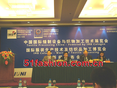 定于2006.10.19-21在上海新國(guó)際博覽中心舉行的《2006中國(guó)國(guó)際縫制設(shè)備與物加工技術(shù)展覽會(huì)》昨日于上海光大會(huì)展中心國(guó)際大酒店舉行了新聞發(fā)布會(huì),出席大會(huì)的有: ――科隆國(guó)際展覽有限公司 亞太區(qū)總裁 德瑞先生 ――科隆展覽中國(guó)有限公司 董事總經(jīng)理 馮向軍先生 ――北京時(shí)瑞展覽有限公司 總經(jīng)理 李學(xué)祿先生