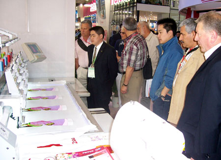 設(shè)在家電館的飛躍特裝展區(qū),與海爾、長虹、康佳、美的、春蘭等著名品牌同臺亮相,盡顯風(fēng)采。國內(nèi)外客商對飛躍推出的電腦家用機、電子燙臺、無油電腦平縫機、電腦繡花機和高速電子釘扣機等機電一體化、自動化、智能化的產(chǎn)品表現(xiàn)出濃厚的興趣,并給予了高度評價。他們認為,中國的產(chǎn)品不僅具有卓越的性價比,而且完全達到了國際水準。每天,公司參展人員都要接待大批客商。第一次參加廣交會的國際貿(mào)易部員工李瑛瑛說:“沒想到在綜合性的廣交會上,飛躍的產(chǎn)品會受到這么熱烈的歡迎!”
