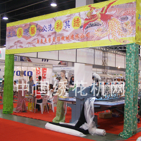 本屆展覽會的目標(biāo)觀眾群體覆蓋了幾乎所有的服裝生產(chǎn)企業(yè),來自全國各地的參展商將向客戶展示其具有生產(chǎn)力、靈活度、高品質(zhì)及先進(jìn)技術(shù)的制衣設(shè)備,以提高和滿足中國服裝加工業(yè)各個領(lǐng)域的相關(guān)需求。更為杭州及周邊地區(qū)服裝及制衣設(shè)備企業(yè)充分了解國內(nèi)、國際制衣設(shè)備的最新動態(tài)和最新技術(shù)提供了機(jī)會。在展會現(xiàn)場,記者看到了由廣東展藝電腦機(jī)械有限公司提供的兩臺大型的多頭電腦繡花機(jī)(左下圖),在會場中吸引了眾多的觀眾的關(guān)注。
