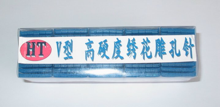 | 本產(chǎn)品為采用硬質工具鋼制造的雕孔機針,機針表面鍍有硬鉻層。有V字型、三角形兩種規(guī)格,專門用于雕孔繡。