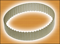 它是以高強度低延伸的化纖繩或鍍銅鋼絲繩為骨架,聚氨酯膠包裹帶的工作面制成齒形(有單面齒形,雙面齒形)與齒形帶輪嚙合傳動。是綜合帶傳動和鏈傳動優(yōu)點的新型傳動帶。